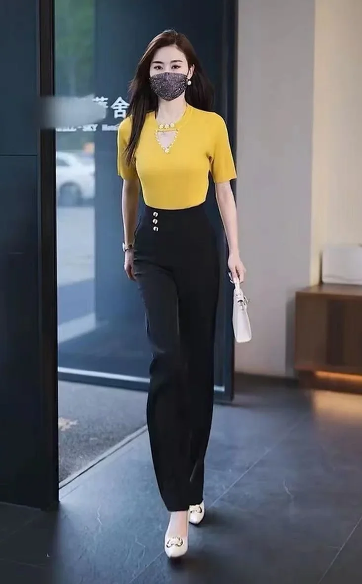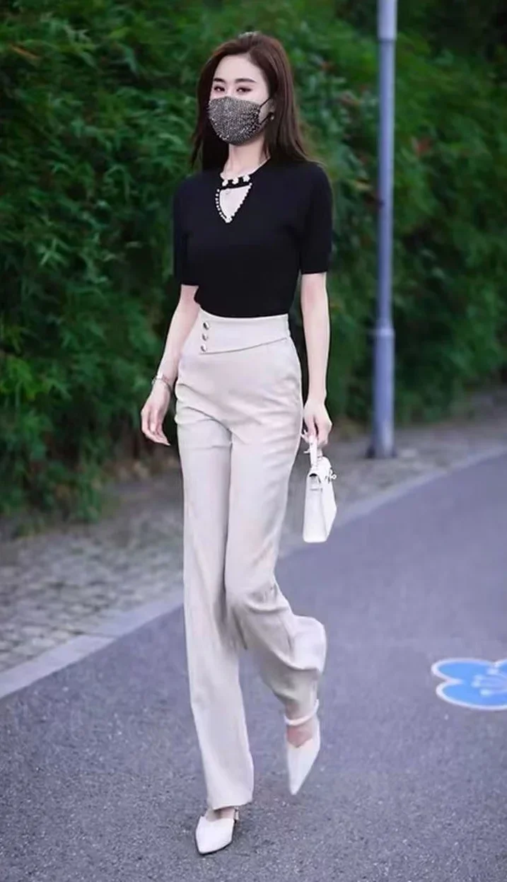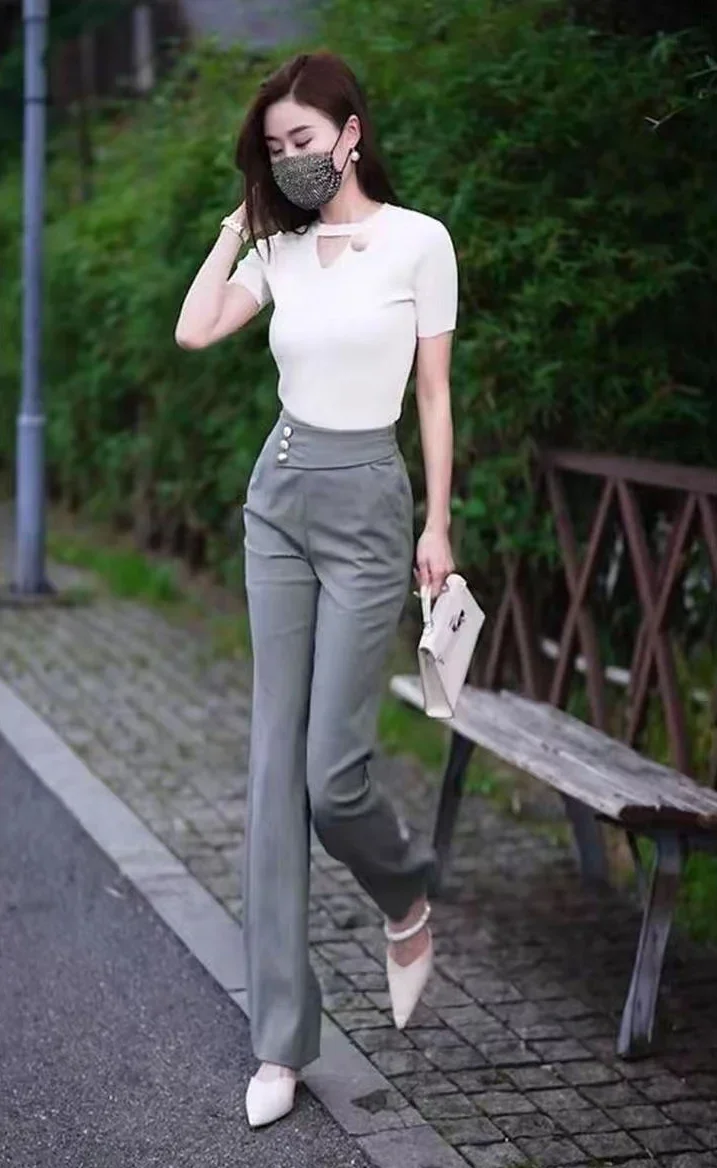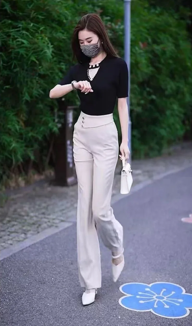 Classic Aesthetic Chic and Elegant Slacks Women's Flare Trousers Pants