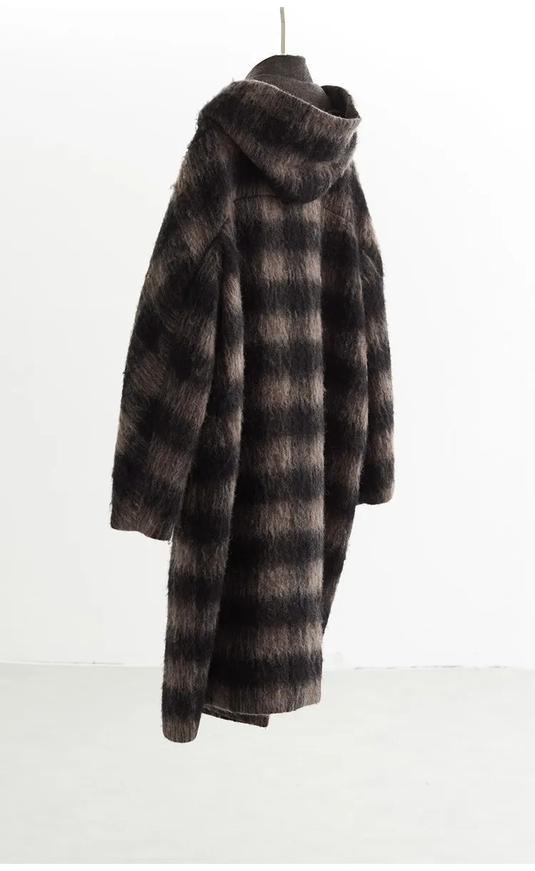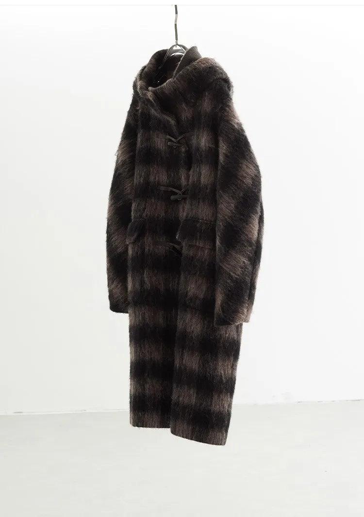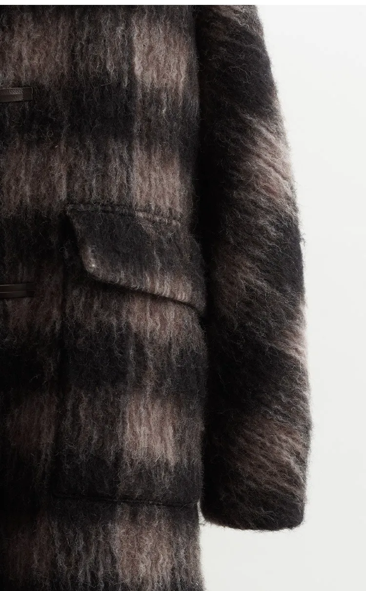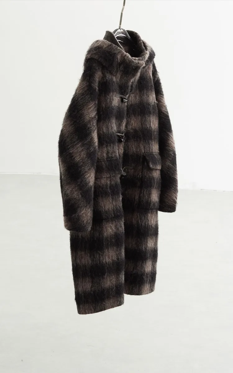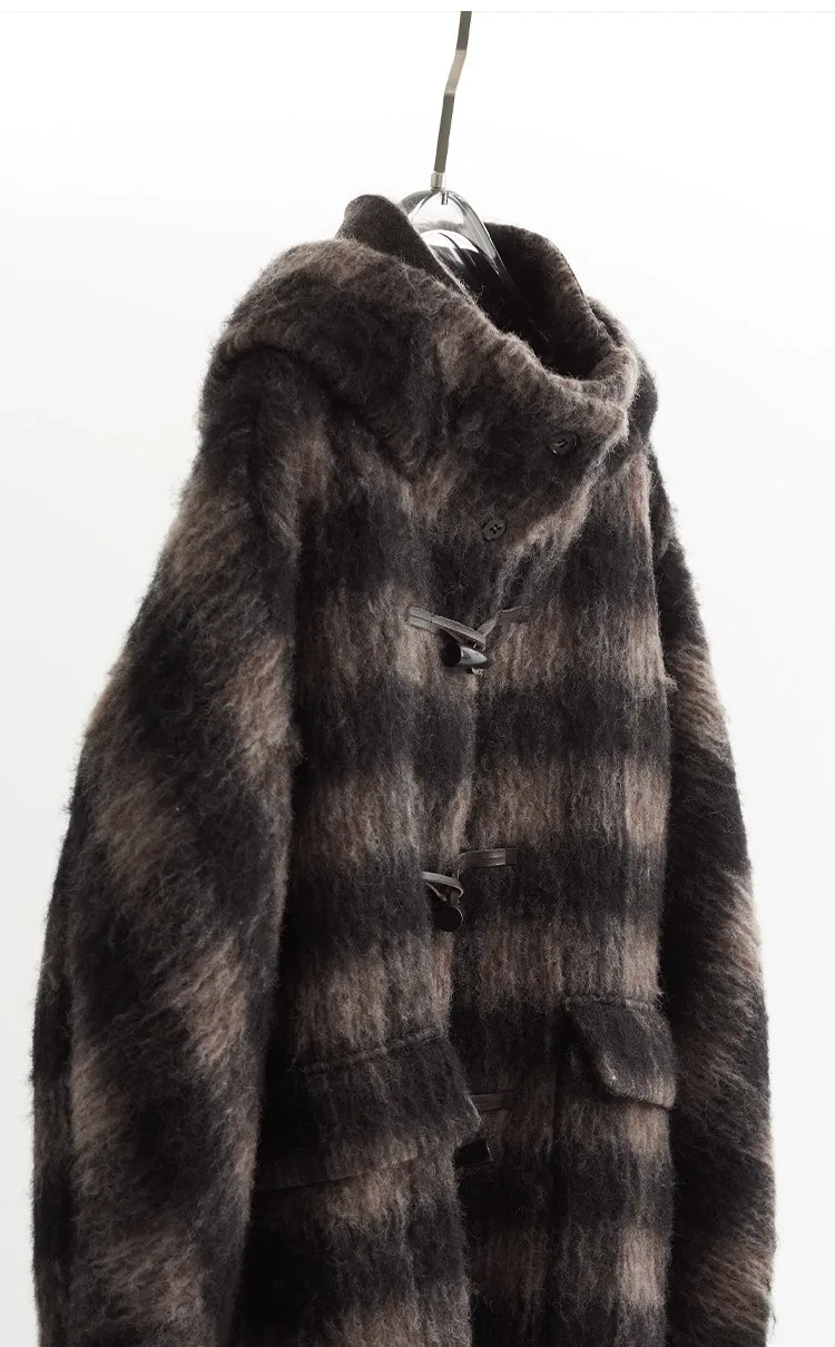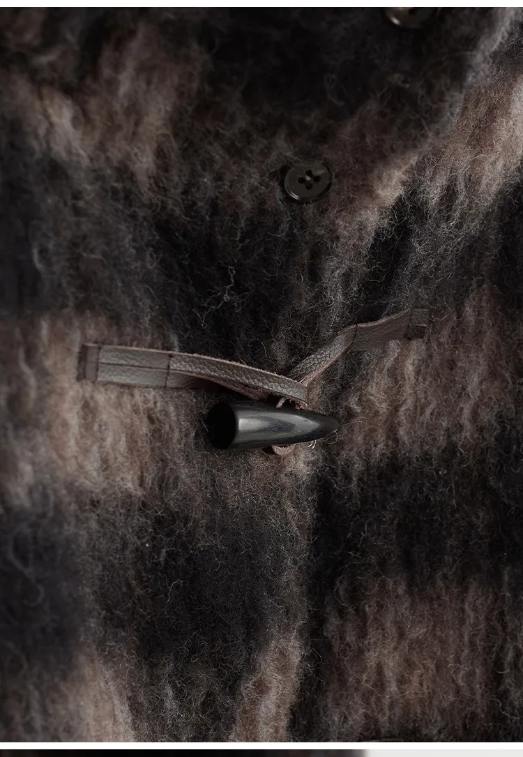 Plaid Coat~ Retro Style Horn Button Mid-Length Coat Women's Alpaca Wool British Style