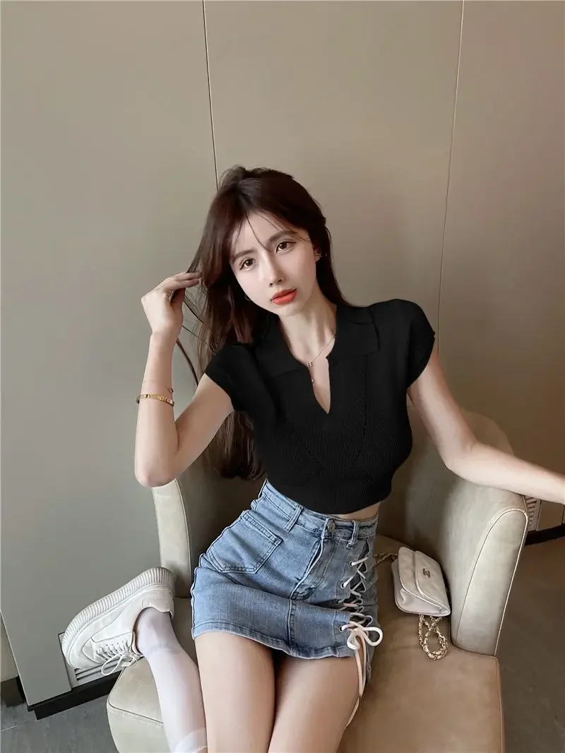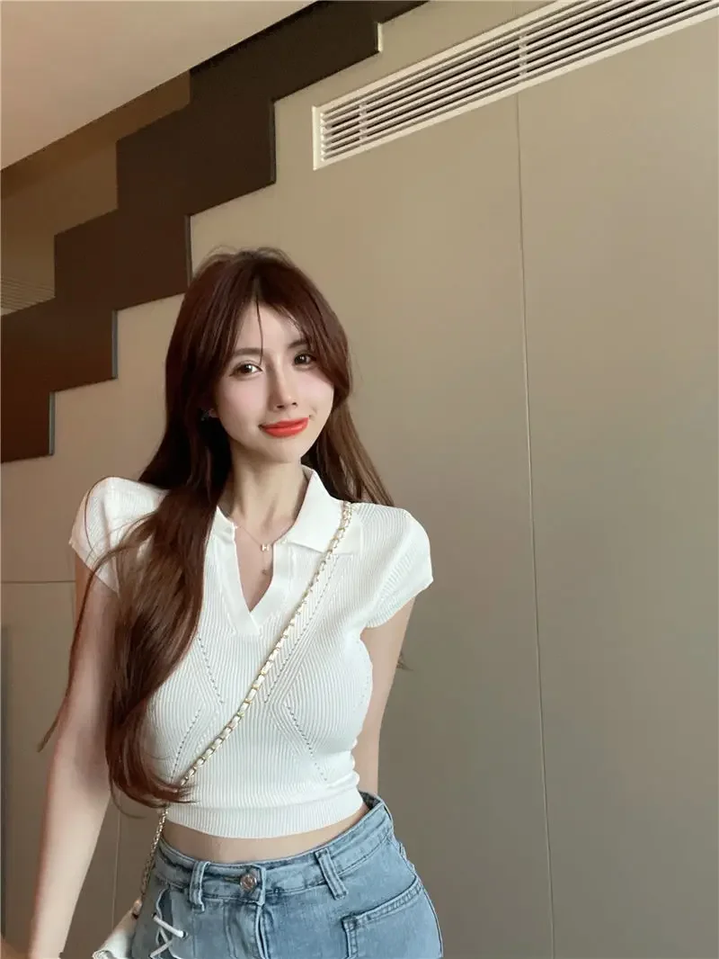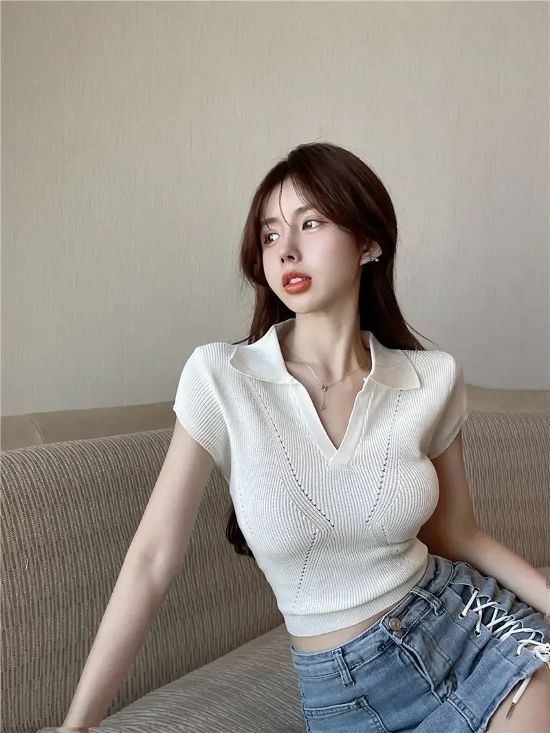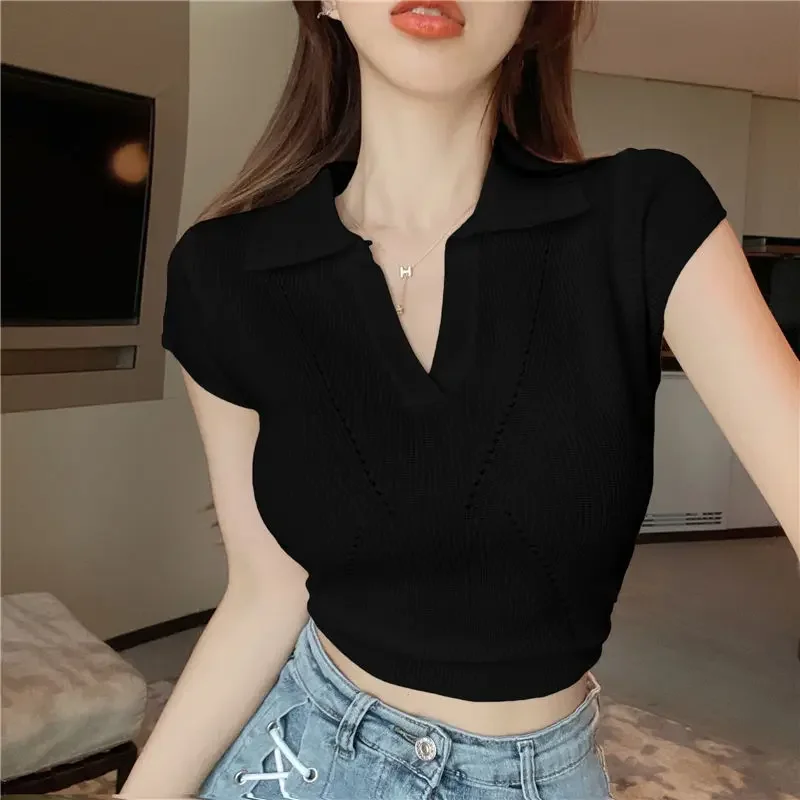 Polo Shirts Plain Sexy Pink Slim Tee Coquette shirts