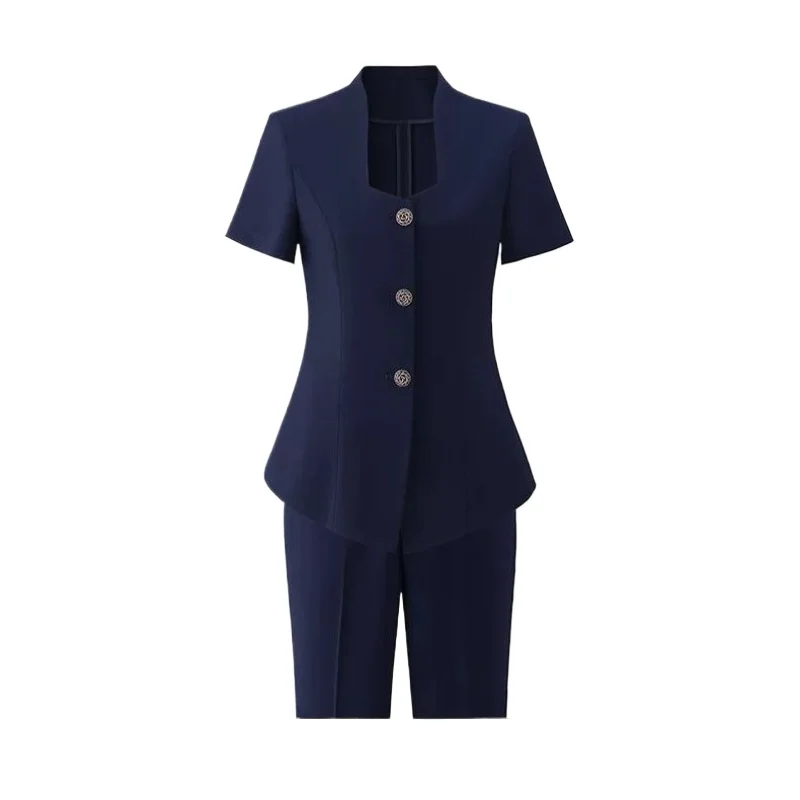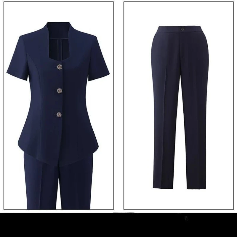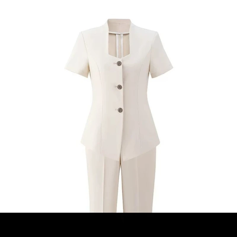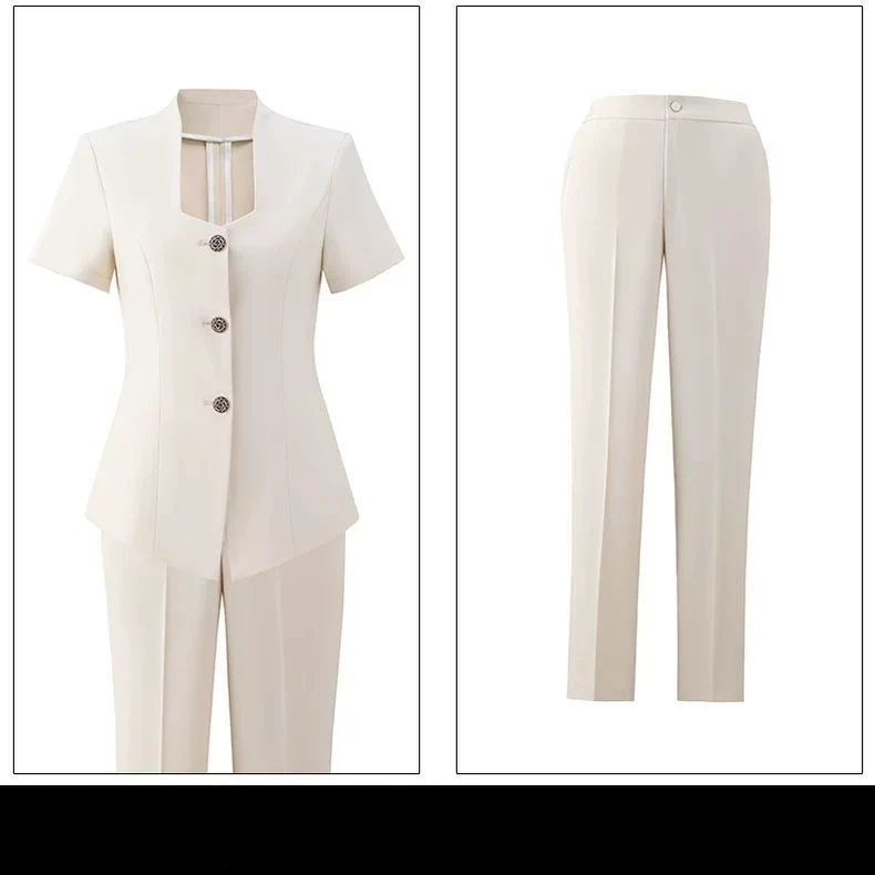 Women's Professional Suit Set Short-Sleeve Formal Suit with Long Pants